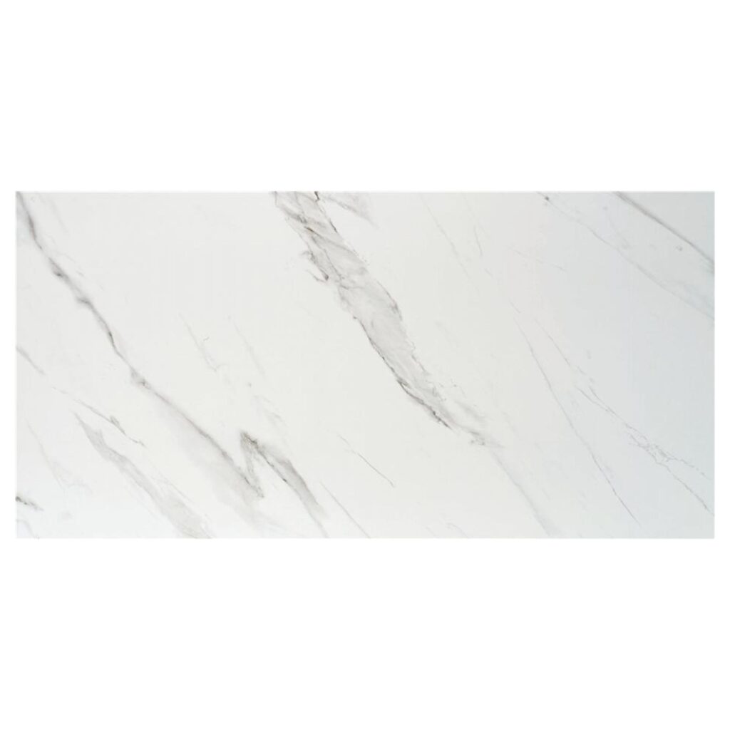 Hera Blanco is a classic marble-effect porcelain tile, specifically designed to emulate the look of high-end calacatta or statuario marble.