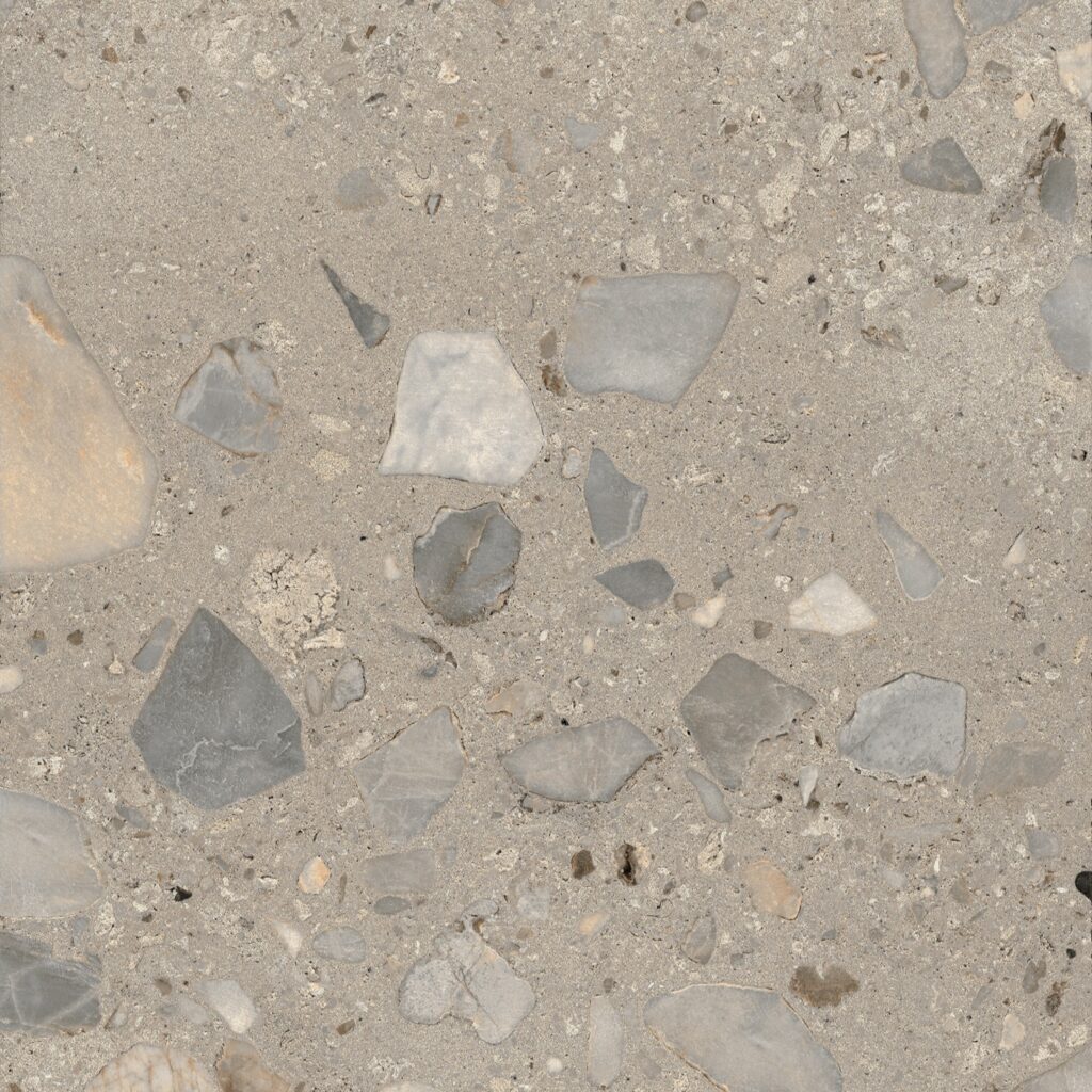 I Ciottoli Sassi Grigio is a terrazzo-style large-format tile. It features large speckles in various shades, which add depth and character to your home. Each ‘speckle’ has a raised ‘lappato’ finish, which means they are semi-polished. This adds texture and reflects the light beautifully.