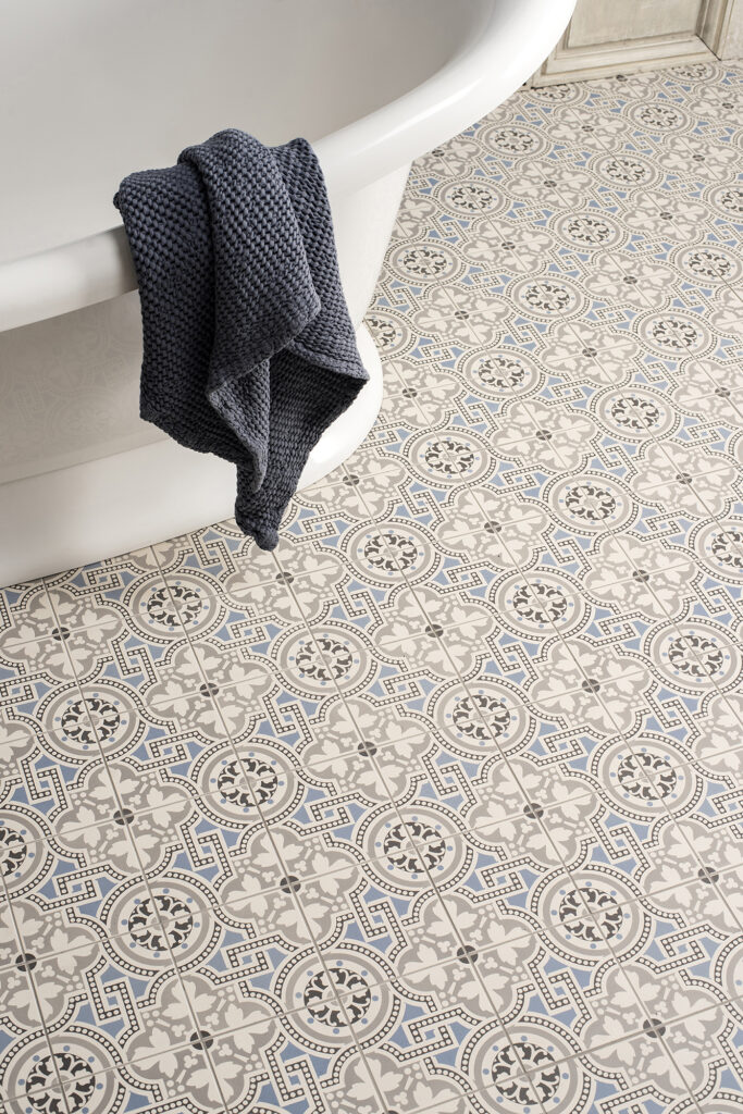 Salisbury Blue on Dover White Floor Tile – Patterned Victorian Floor Tile
