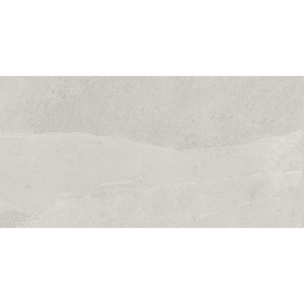 A rectangular slate-effect porcelain tile. Stonehill White is a minimalist option that seamlessly blends with all interior styles, from modern to rustic.