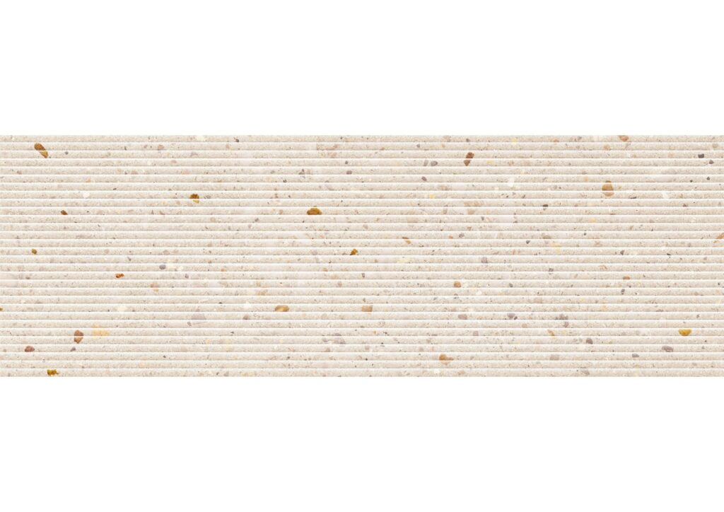 Suite Vita Beige Fluted Terrazzo Decor is a modern terrazzo-inspired design. Perfect for adding character and texture to a feature wall. The light beige base colour has flecks of terracotta, amber, and beige chips throughout, complementing both warm and cool color schemes.